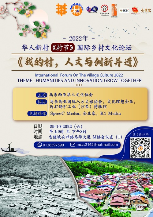 29 | 2022年华人新村《村节》国际乡村文化论坛《我的村,人文与创新并进》 一项集合国内外知名文化,艺术,社会,教育,创意产业,文化旅游等专家,学者即将分别以线上线下开讲了 ! 诚邀大家报名参加!入场免费!