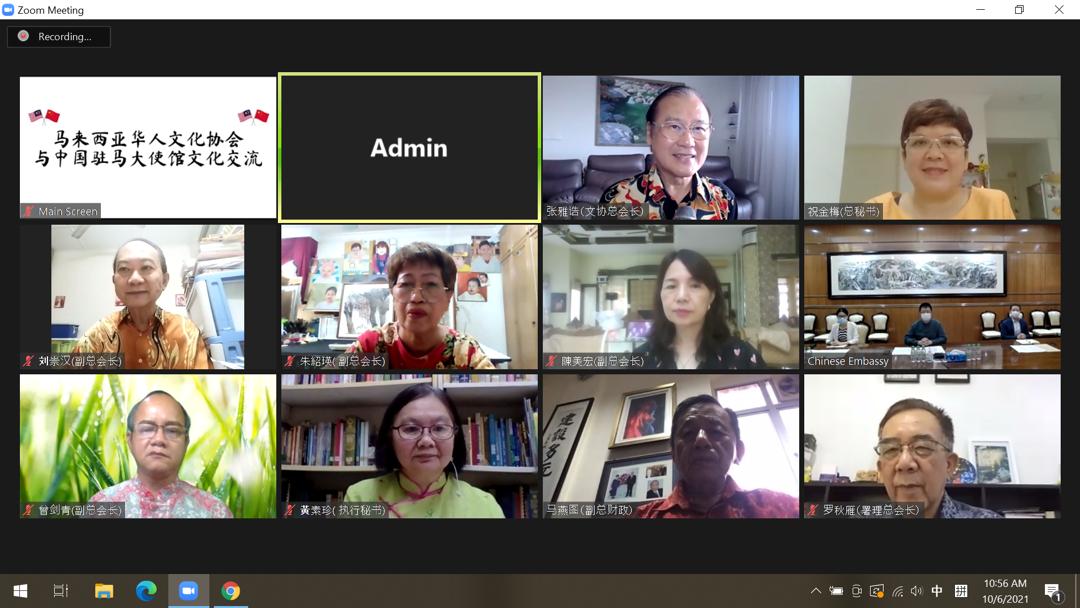 10 | 马來西亞华文化协会与中国驻马大使馆文化参赞张振在视频上进行交流 日期:2021年6月10日(星期四) 时间:上午10时 地点:ZOOM 会议室